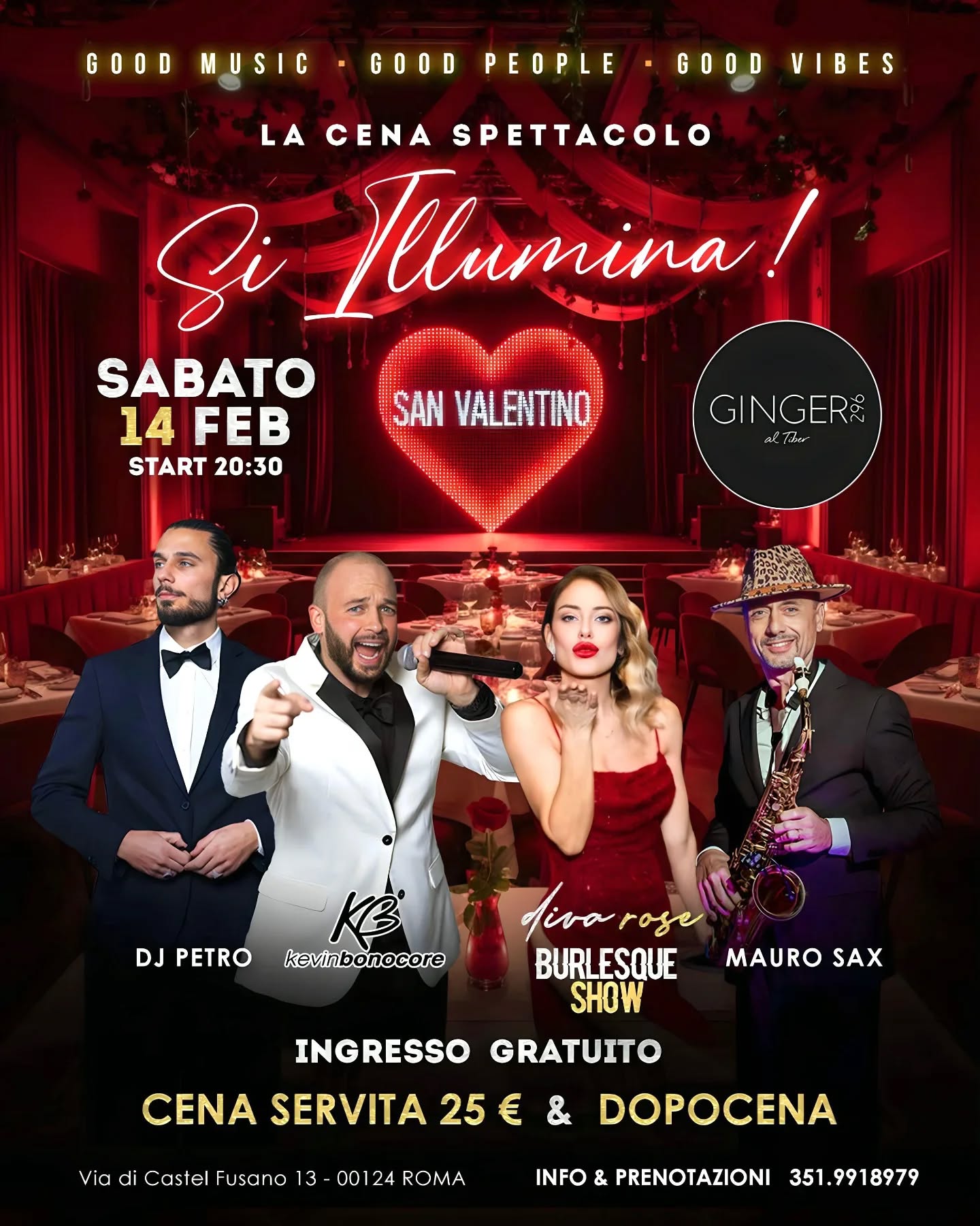 SABATO 14 FEBBRAIO GINGER al Tiber SAN VALENTINO Si Illumina! BU…