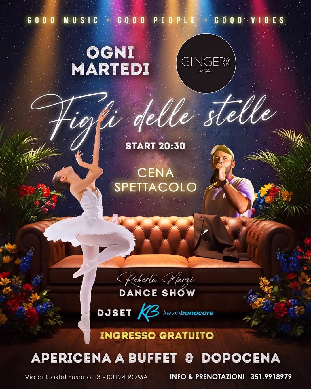 TUTTI I MARTEDÌ GINGER al Tiber FIGLI DELLE STELLE CENA SPETTACOLO & DJ-…